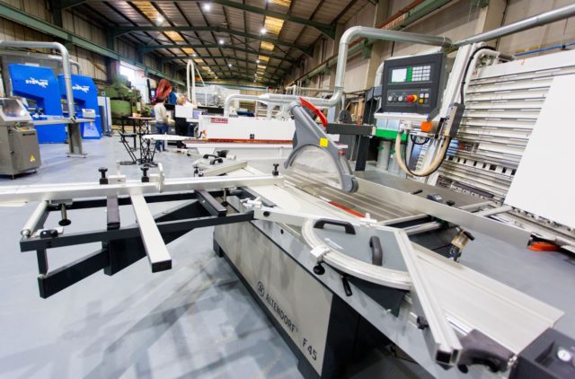 A: The industry has changed through the technological advancement of machines. The CNC side of machinery is always developing, along with new systems, safer systems. The HSE (Health and Safety Executive) introduced a new set of regulations in 1998 that meant all the manufacturers of the machines had to develop the machines and to progress them forward to keep up with the current regulations. That’s how it’s developed, it’s far more technically advanced than it ever was. The machines are bigger, heavier, faster and likewise with the accessories that go on it, they are always developing them. The industry itself has come a long way. here’s no more flat-belt drive machines now, they’re all direct on-drives, they’re all energy efficient motors and in the last 15 years, the design side of the machines has also changed. They used to be old green bland colours whereas now they’re aesthetically pleasing. But you have the old-school people who still love all the old cast-iron machines. The paintwork on all machines are done up to a high standard and you know the new machines look as good as a new Jaguar car with the finish on them. There’s massive advances in the quality, overall appearance and efficiency of the machines now.