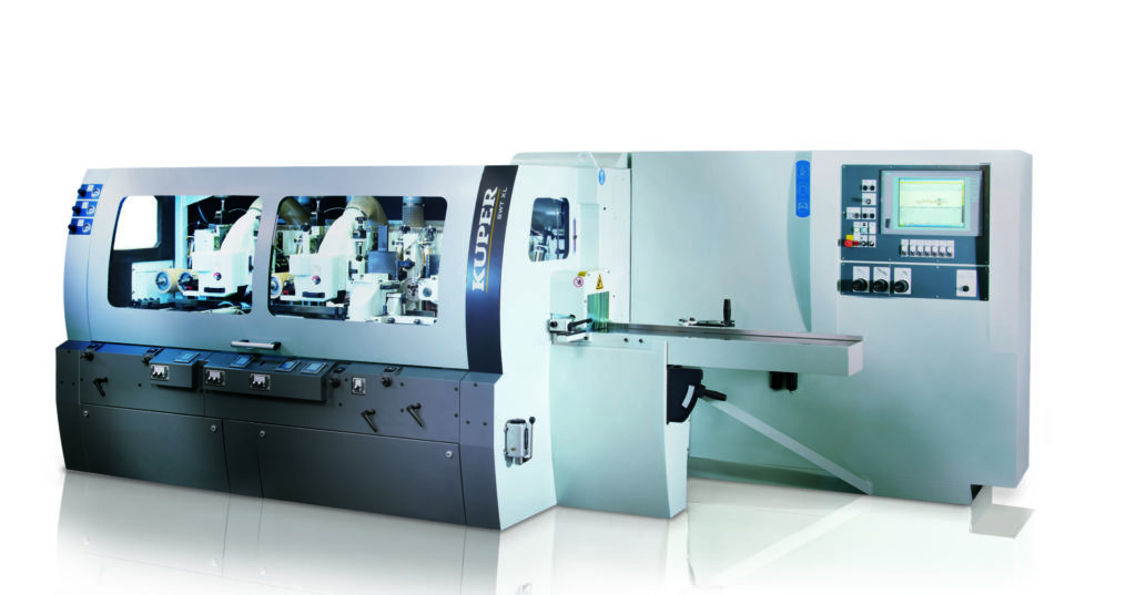 The Kuper Compact XS model is available as a 4 or 5 head machine, ideal for customers looking for lower volume production but demanding high quality machining. Now equipped with K2 touch screen control and automatic side and top head adjustment as standard the XS also features ProLock® spindle system, pneumatic pressures, inverter feed, two full width driven infeed and outfeed rollers and swivel mounted feed unit.