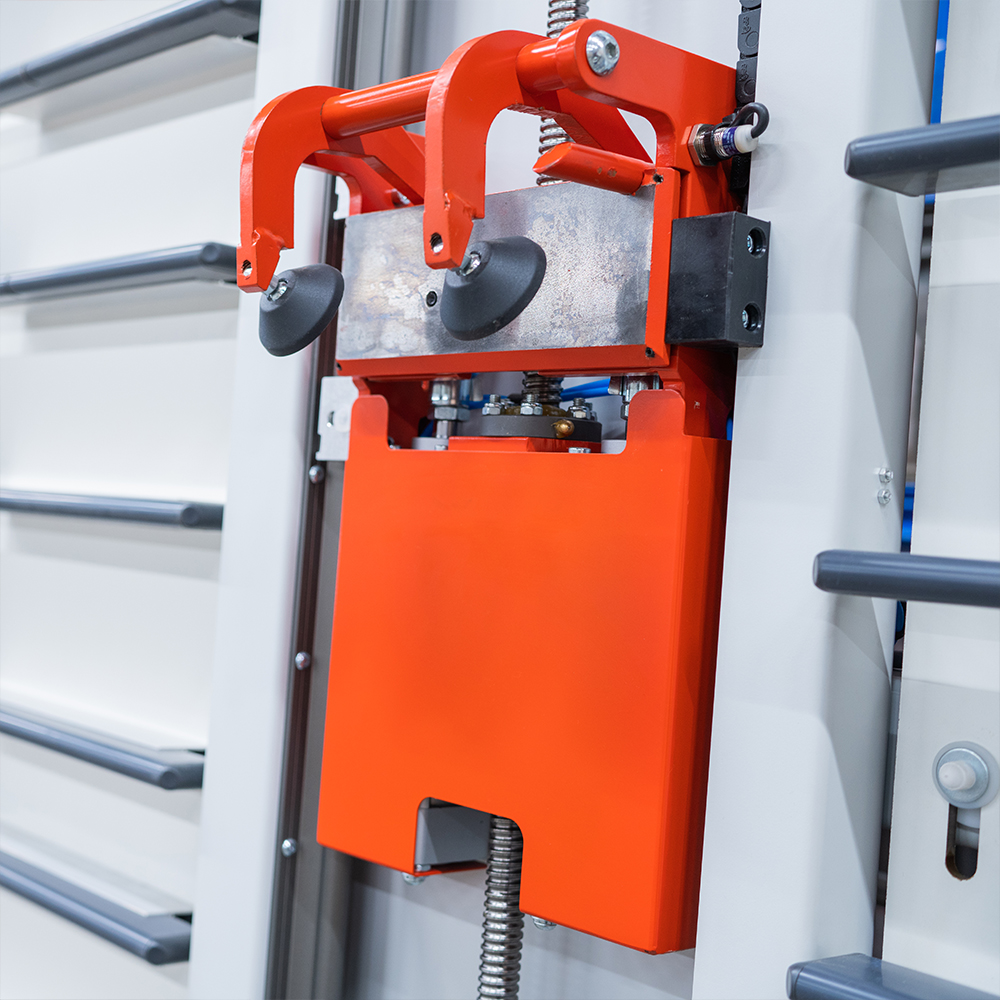 As with most Elcon vertical panel saws the QUADRA features an automatic shifting back frame. Panels are supported by a series of horizontal backing strips. When cutting horizontally inevitably the sawing line will sometimes coincide with the support strips. Rather than cutting through the support strips the Elcon QUADRA recognises when this will happen and moves the support strips out of the sawing line. This is all done automatically requiring no input from the operator, ensuring no damage is caused to the machine. The system can be powered pneumatically or electronically.
