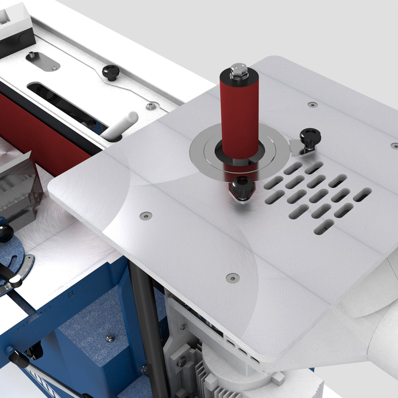 For precision sanding the machine can be configured with a second working station to the rear with adjustable sanding pad and guide fence.