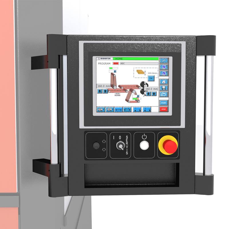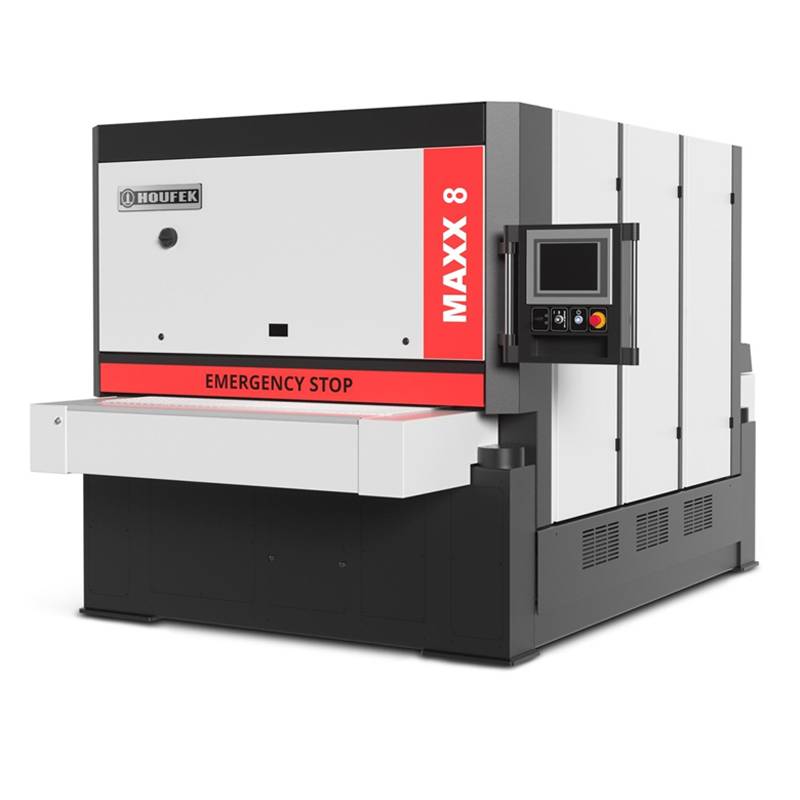 Working width capacity for the Houfek Maxx 8W include 1100, 1350 and 1550mm with a thickness range from 0.5 to 160mm (or 220mm as option). For small parts a vacuum or magnetic bed is available with automatic demagnetizer. Standard features on the Maxx 8W include programmable control with 10.1” colour touch screen, motorised table height adjustment, digital measuring of table position, rubber pressure rollers, automatic feed belt tracking, pressure safety switch, internal LED lighting and glazed side access door for easy viewing.