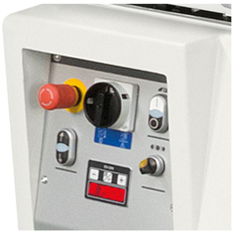 The pressure of the thicknesser feed roller to be adjusted according to the type of wood being machined. The infeed roller has a helicoidal profile to guarantee firm and constant work piece feed, while the outfeed roller in sandblasted steel, maintains the perfect post-processing finishing. For maximum long lasting stability the cast iron thicknessing table is supported on 4 spindles with trapezoidal threads.
