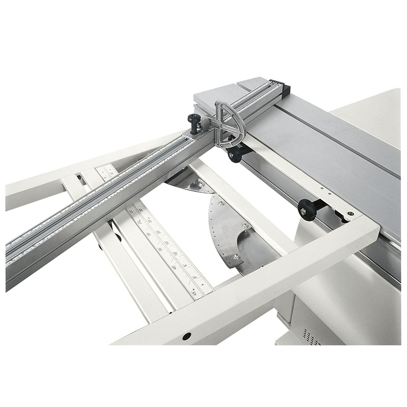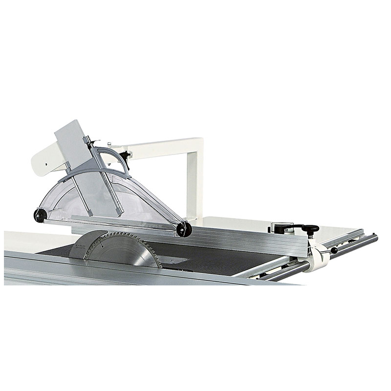 Rip fence adjustment is smooth and precise with micrometric adjustment and cam-locking system. The main fence support is cast iron for high rigidity. For added operator comfort and improved dust extraction the standard riving knife mounted crown guard can be upgraded to the optional overhead protection.