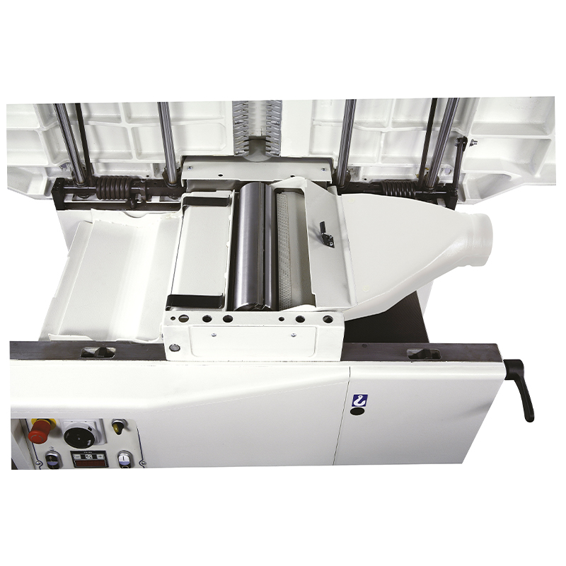The SCM Nova FS 410 is a combined planer thicknesser, easy to use and ideal for joinery workshops looking for a high performance machine in a limited space. For an impeccable finish the pressure of the thicknesser feed rollers can be adjusted according to the type of wood machined. The roller infeed has a helicoidal profile to guarantee firm and constant work piece feed, while the outfeed roller in sandblasted steel maintains the perfect post-processing finishing.