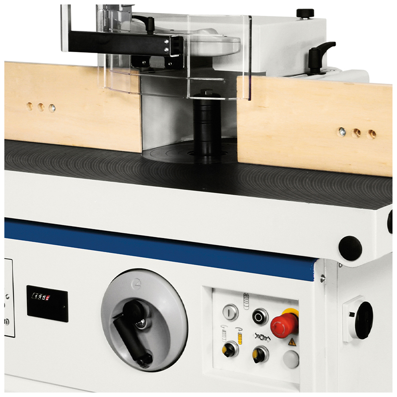 The SCM Nova TF 100 is a fixed shaft spindle moulder (non-tilting) built for precision and reliability. Operation is quick and simple with a manual handwheel for adjusting the spindle height with mechanical digital readout. The Nova TF 100 can be run at four spindle speeds to suit a full range of work and tooling; 3500/ 6000/ 8000/ 10000 rpm. A convenient speed indicator lamp shows the operator the current speed selected.