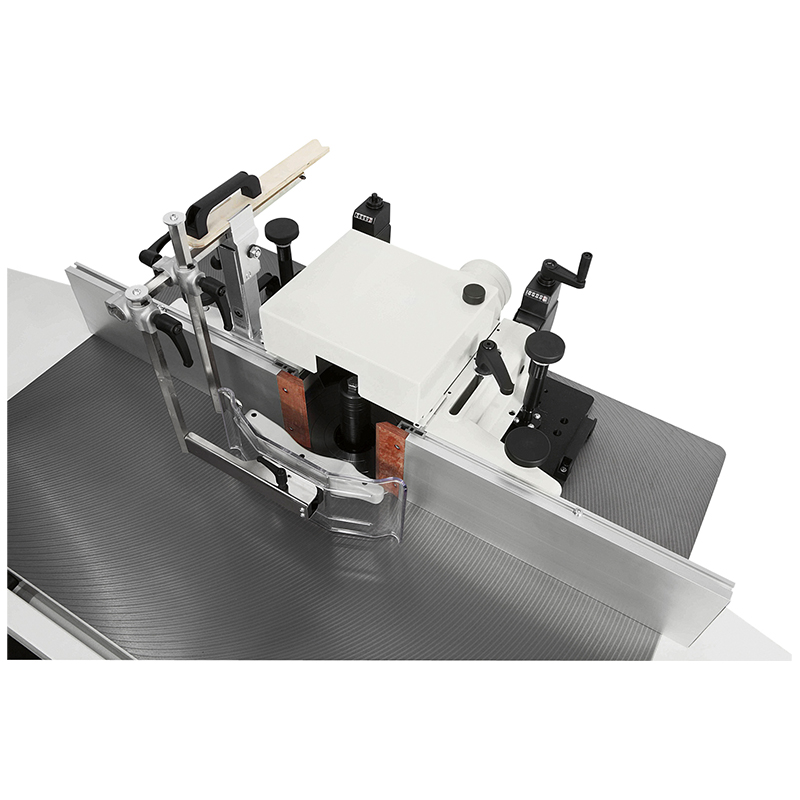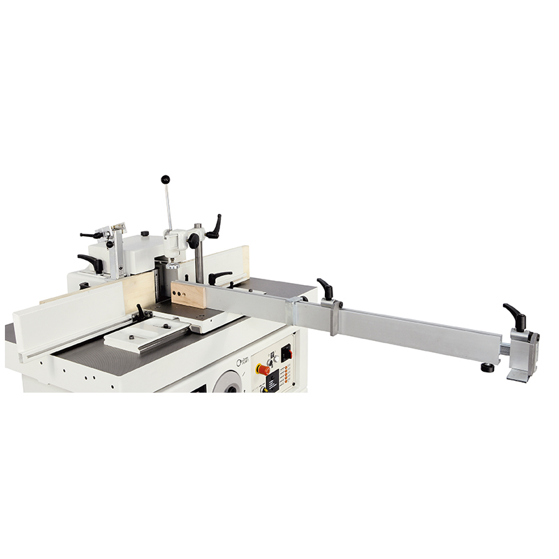 Add extra workpiece support, select the optional “LL” version with 2 profiling extension tables and front extension rail to give an overall table length of 2500 mm. For small tenoning operations the SCM Nova TF 100 can be specified with a table mounted sliding carriage and telescopic swivelling fence and flip over stops.