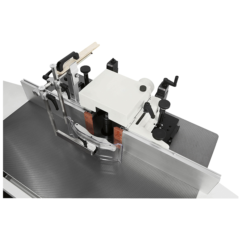 Small tenoning operations can be easily accommodated with the optional table mounted sliding carriage. As with all Nova spindle moulders, the TF 110 can be specified with the “LL” profiling option which includes infeed and outfeed extension tables and extending front rail for increased workpiece support.