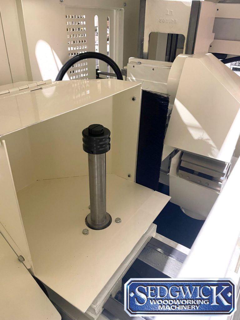 A quick and simple machine to set up with accurate operation. Work is positioned on the rolling table against an end stop and fence. The tenon width is set by raising or lowering the top motor and its position on the timber by moving both tenon heads up or down. Each head has its own independent motor. Stepped tenons, splayed tenons, scribed tenons and double tenons are all possible on this versatile machine. Built to withstand continuous production, the Sedgwick tenoner is invaluable to any workshop.